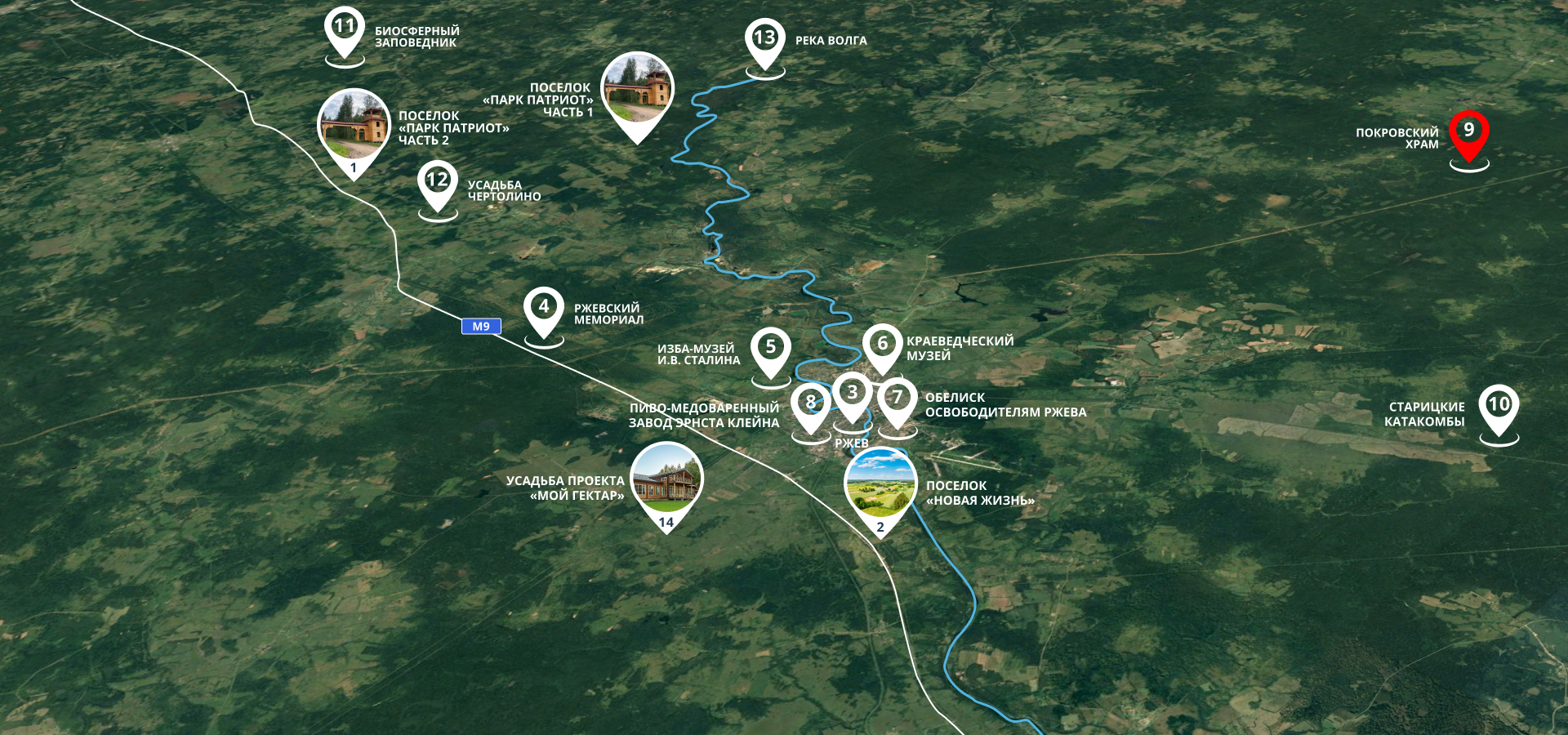 В 30 км от поселка во Ржеве, городе воинской славы, множество достопримечательностей, которые стоит посетить и посмотреть.